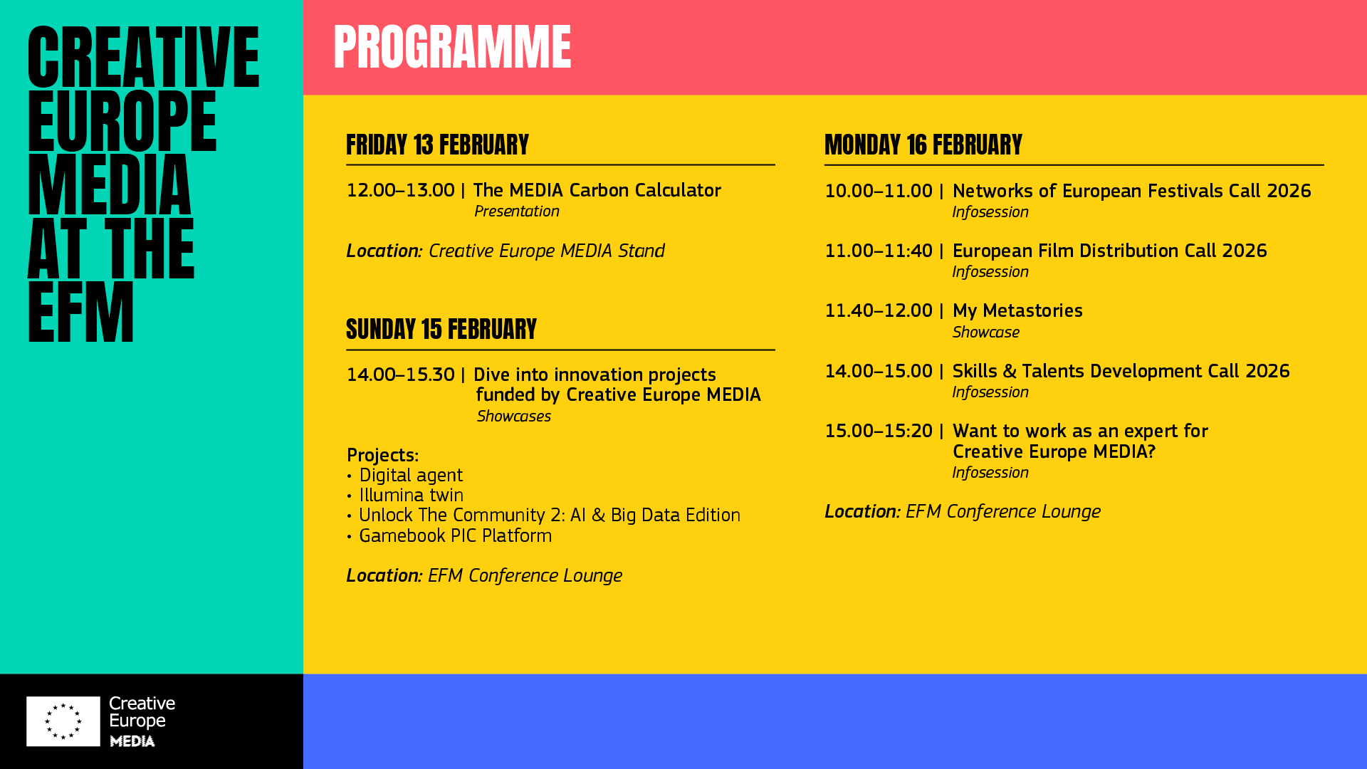 Europa Creativa MEDIA organitza diversos esdeveniments en el marc de la Berlinale i de l'European Film Market, del 12 al 18 de febrer de 2026.